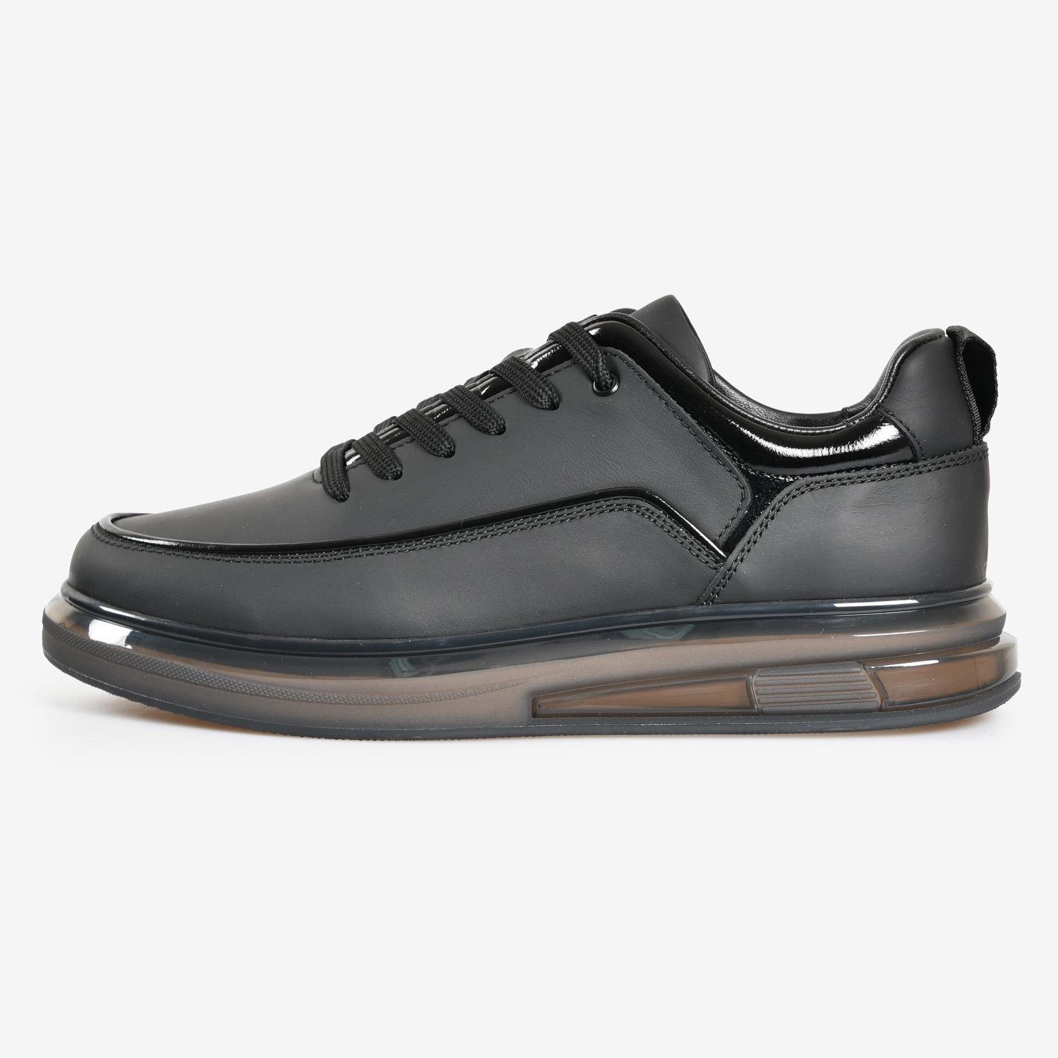 Siyah Deri Bağcıklı Erkek Sneaker